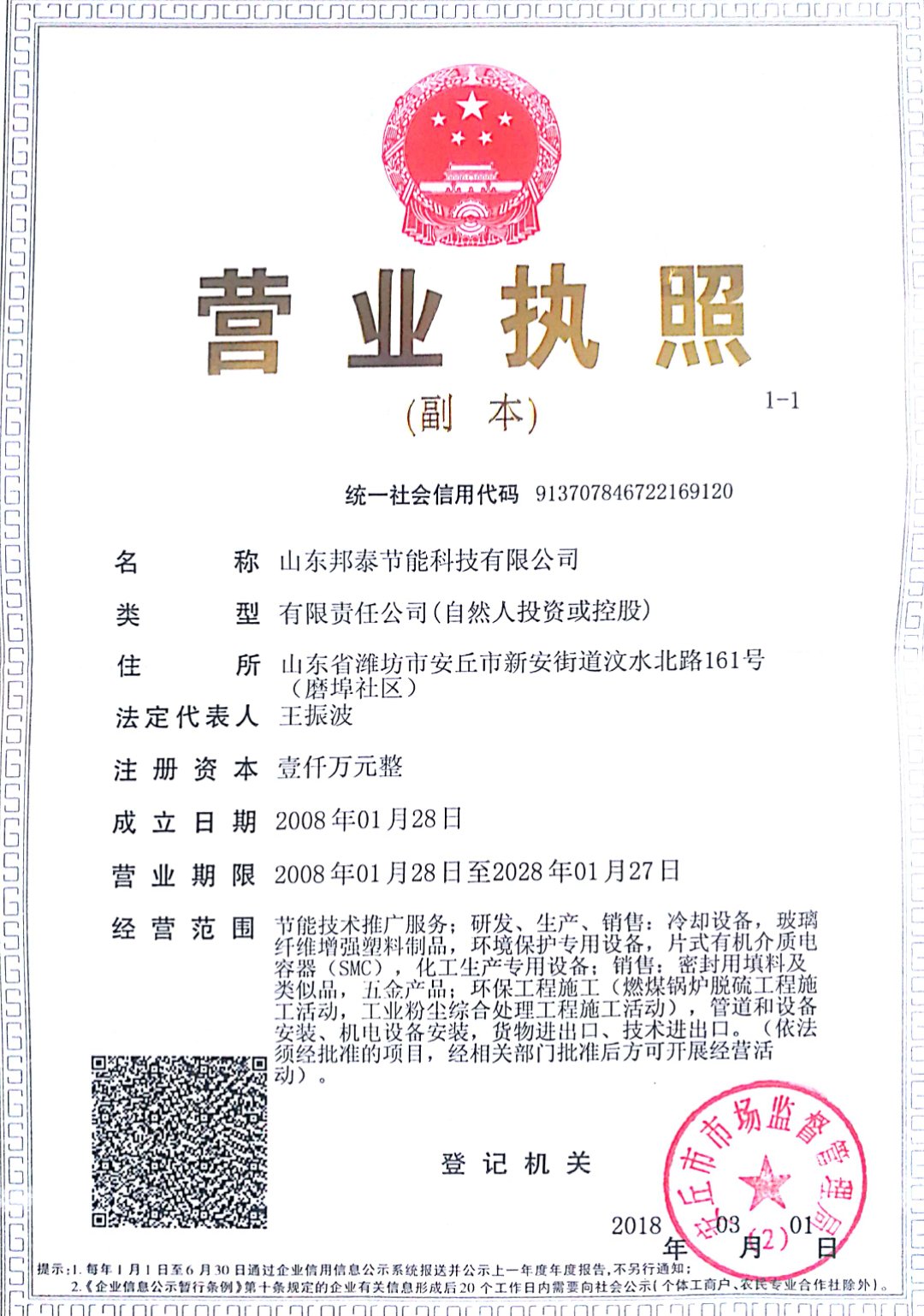 山東邦泰節(jié)能科技有限公司是一家集不銹鋼冷卻塔,全鋼冷卻塔,玻璃鋼冷卻塔,水輪機(jī)冷卻塔,無動(dòng)力節(jié)能冷卻塔設(shè)計(jì),制造,服務(wù)于一體的現(xiàn)代化企業(yè),主要有不銹鋼冷卻塔,玻璃鋼冷卻塔,水輪機(jī)節(jié)能冷卻塔,圓形,方形,逆流式,橫流式玻璃鋼冷卻塔,全鋼冷卻塔.邦泰公司位于山東省濰坊市安丘經(jīng)濟(jì)開發(fā)區(qū),環(huán)境優(yōu)美,交通便利。公司長(zhǎng)期致力于冷卻塔設(shè)備的研發(fā)生產(chǎn),多年來公司一直生產(chǎn)多種規(guī)格型號(hào)玻璃鋼冷卻塔產(chǎn)品及應(yīng)用于不同領(lǐng)域的冷卻設(shè)備,業(yè)務(wù)便及全國(guó)各地,并出口海外多個(gè)國(guó)家,受到了廣大客戶青睞。